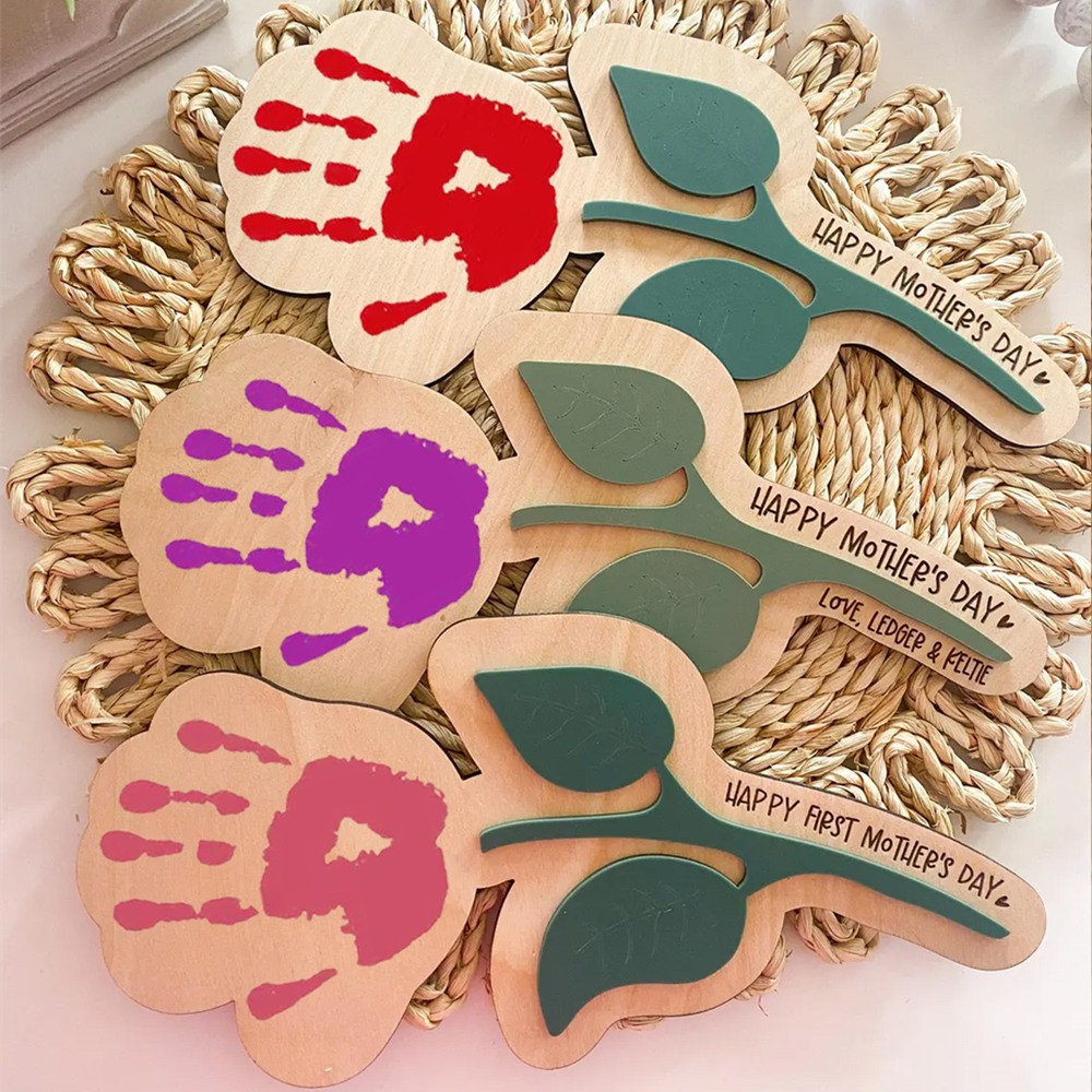 Custom DIY Flower Kids Handprint Sign Gift for Mom or Grandma Mothers Day Gift